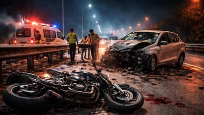 Pune Mumbai Expressway Accident: पुण्यापासून सुमारे ४५ किलोमीटर अंतरावर नायगावजवळ पुणे-मुंबई हायवेवर शुक्रवारी पहाटे एक भीषण अपघात झाला. एका भरधाव हॅचबॅक कारने अचानक दुभाजक ओलांडून दुसऱ्या लेनमध्ये प्रवेश केला आणि समोरून येणाऱ्या बाईकला चिरडलं. या अपघातात बाईकवरील दोघांचा मृत्यू झाला. ओमकार आर्डे (वय २२) आणि दर्शन शिंदे (वय १५) अशी मृतांची नावं आहेत. दोघेही मावळ तालुक्यातील वडेश्वर गावचे रहिवासी होते.