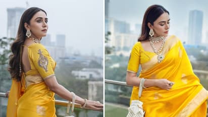 अभिनेत्री अमृता खानविलकर पिवळ्या रंगातील साडीमध्ये अतिशय सुंदर दिसतेय. अभिनेत्रीने गोल्डन लेअर ज्वेलरीने लूक पूर्ण केला आहे.