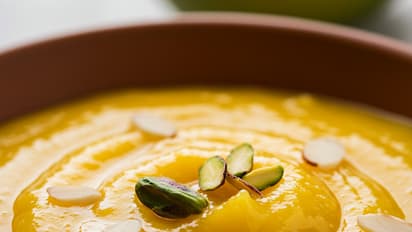 थोड्या साखर, तूप आणि दूधासोबत आंब्याचा गर उकळून घेतला की तयार होतो आंब्याचा हलवा. अधिक घट्ट रूपात तोच पदार्थ ‘आंबा बर्फी’ बनतो. हे लाडके गोड पदार्थ सण, वाढदिवस किंवा खास पाहुण्यांच्या स्वागतासाठी उत्तम पर्याय ठरतात. वरून काजू, बदाम, पिस्त्याने सजवलेले हे पदार्थ दिसायलाही तितकेच मोहक असतात.