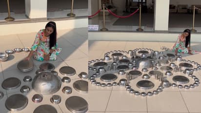 याद्वारे आगळी-वेगळी कला दाखवून व्हिडीओ तयार करणाऱ्या क्रीएटर्सनाही खूप कमी वेळातच प्रसिद्ध मिळते. असाच एक व्हिडीओ सध्या मोठ्या प्रमाणात व्हायरल झाला आहे. दिवाळी सणादरम्यान एका तरुणीने अनोख्या पद्धतीने रांगोळी साकारल्याचे या व्हिडीओमध्ये पाहायला मिळत आहे.