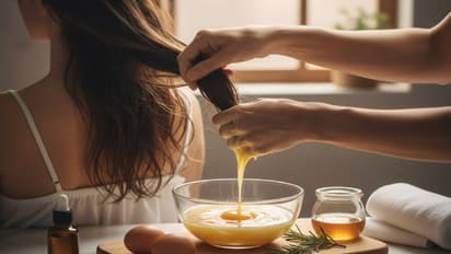 कमकुवत, नाजूक आणि सतत तुटणाऱ्या केसांना प्रोटीनची खूप गरज असते. अंड्यामध्ये नैसर्गिक पेप्टाइड्स (natural peptides) असतात, जे केसांच्या खराब झालेल्या भागांना तात्पुरतं भरून काढतात. एका अख्ख्या अंड्यात चार मोठे चमचे दही घालून ते चांगलं फेटा. जर तुमच्या केसांची टोकं जास्त कोरडी असतील, तर अंड्याचा पांढरा भाग काढून फक्त पिवळा बलक वापरा. हे मिश्रण केसांच्या मुळांपासून टोकांपर्यंत लावा. उष्णता टिकवून ठेवण्यासाठी शॉवर कॅप घाला आणि ३० मिनिटांनी केस धुवा. केस धुण्यासाठी थंड पाणीच वापरा.