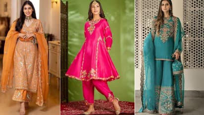 या फोटोत मरून रंगाचे दोन सूट डिझाइन्स आहेत. ऑफिसला जाणाऱ्या मुली किंवा शिक्षकांसाठी हे बेस्ट आहेत. एका प्लेन कुर्त्याच्या नेकलाइनवर मॅचिंग थ्रेड वर्क आहे, तर दुसऱ्यावर रंगीबेरंगी धाग्यांचं काम केलं आहे. अशा प्रकारचे सूट तुम्ही लिनेन फॅब्रिकमध्ये 2000 रुपयांपर्यंत खरेदी करू शकता.