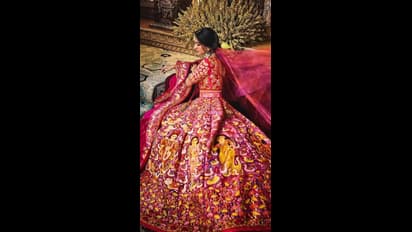 कुशल कारागिरांच्या मदतीने तयार केलेला राधिकाचा खास लेहेंगा आनंद आणि प्रेमाने जगण्याचा संदेश देत असल्याचे दर्शवत आहे.