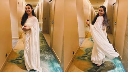रेवती ऑफ व्हाईट रंगाच्या कोटा डोरिया साडीमध्ये खूपच सुंदर दिसतेय. ही साडी हलकी असते आणि शरीरावर व्यवस्थित बसते. जड शरीरयष्टी असलेल्यांसाठी हा एक उत्तम पर्याय आहे कारण ती शरीराला फ्लो देते, चिकटत नाही. यासोबत स्लीव्हलेस किंवा ३/४th स्लीव्हजचा ब्लाउज निवडा.