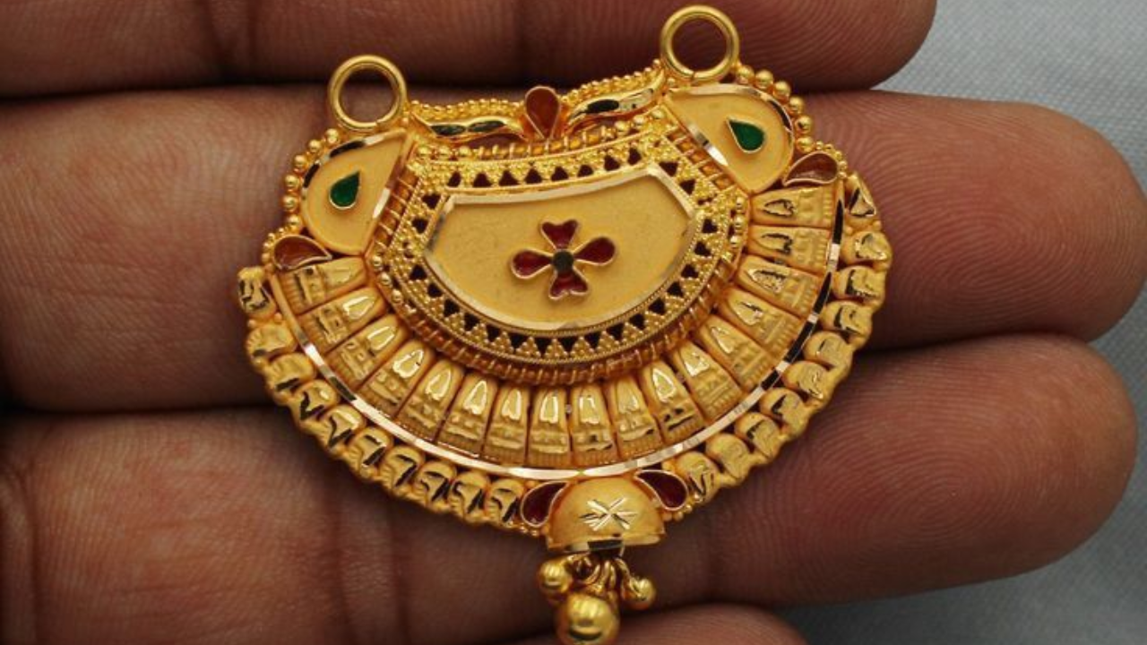 हेवी आणि स्टेटमेंट लुकसाठी, हे क्लिष्ट कोरीवकाम असलेले लॉकेट मंगळसूत्र माळेसोबत आकर्षक लुक देईल. याला शील्डसारखा आकार दिला असून मध्यभागी लाल रंगाचा खडा आहे. तर, कडांवर फिलीग्री वर्कची कलाकुसर आहे. हिरव्या रंगाचे छोटे मीनाकारी पॅच याला आणखी सुंदर बनवत आहेत. तुम्हाला राजस्थानी दागिने आवडत असतील, तर हे निवडा. ऑनलाइन 300-500 रुपयांमध्ये हे खरेदी करता येईल.