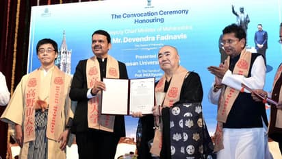 महाराष्ट्राचे उपमुख्यमंत्री देवेंद्र फडणवीस यांना जपानच्या कोयासन विद्यापीठाकडून (Koyasan University Of Japan) मानद डॉक्टरेट पदवी प्रदान करून त्यांचा सन्मान करण्यात आला आहे. मुंबई विद्यापीठाच्या (Mumbai University) दीक्षांत सभागृहात मंगळवारी (26 डिसेंबर 2023) हा सोहळा पार पडला.