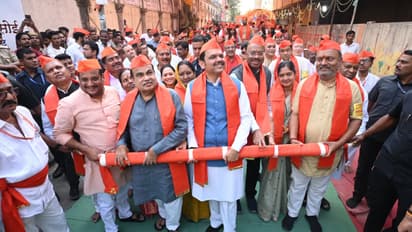 रथ ओढला: केवळ उपस्थित न राहता, फडणवीसांनी सामान्य रामभक्तांच्या खांद्याला खांदा लावून प्रभू श्रीरामाचा रथ ओढला. हे दृश्य पाहून 'जय श्रीराम'च्या घोषणांनी संपूर्ण परिसर निनादला.