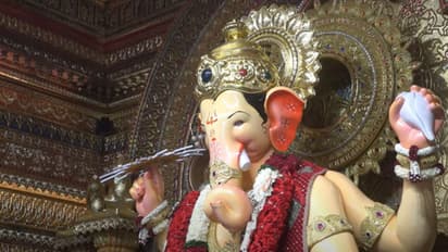 मंडपाबाहेर मोठ्या पुष्पमाळा लावण्यात आल्या होता. बाप्पा जसा पुढे सरकत होता तशीतशी एक पुष्पमाळ बाप्पाच्या गळ्यात घातली जात होती.