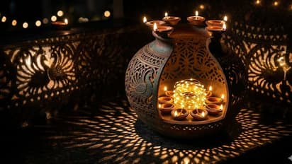 मोठ्या आणि लहान माठांचा वापर करून गणपतीची मूर्ती बनवा. इथे दोन माठ एकमेकांना जोडून आणि क्ले वापरून हे सुंदर गणपती बाप्पा साकारले आहेत. आधी माठांना सुंदर आकारात कापलं आहे. त्यानंतर रंग, पेंट आणि सजावटीच्या वस्तूंनी डोळे, सोंड आणि मुकुट यांसारखे तपशील तयार केले आहेत. शेवटी फुलं, दिवे किंवा लाइट्सने सजवून एक सुंदर गणपती डेकोर तयार केला आहे.