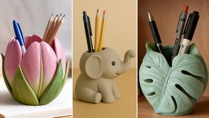 हे डिझाइन्स मुलांच्या टेबलला एखाद्या स्वप्नवत दुनियेसारखं बनवतात. ब्राईट कलर्स आणि फँटसी लुक, विशेषतः मुली आणि लहान मुलांसाठी परफेक्ट असतो. यामुळे टेबलला एक इंस्टाग्राम-फ्रेंडली लुक येतो. अशा प्रकारचे पेन होल्डर १००-२०० रुपयांच्या रेंजमध्ये सहज मिळतात.