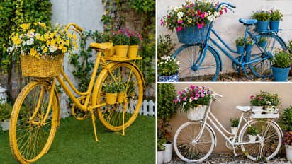 तुमची जुनी सायकल गार्डन डेकोरेशनसाठी वापरा. सायकल स्वच्छ करून तिला पिवळा, निळा किंवा पांढरा असा आवडीचा रंग द्या. पुढच्या बास्केटमध्ये आणि मागच्या सीटवर फुलांच्या किंवा छोट्या रोपांच्या कुंड्या ठेवा. ही सायकल तुम्ही गार्डन, बाल्कनी किंवा घराबाहेर सजावटीसाठी ठेवू शकता.