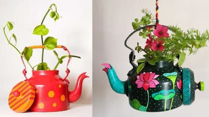 जर तुम्हाला झाडांना अधिक आकर्षक बनवायचं असेल, तर हँगिंग किटली प्लांटर वापरा. तुम्ही रंगीबेरंगी किटल्या दोरीने किंवा साखळीने टांगू शकता.