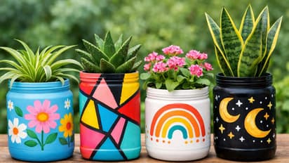 जुन्या प्लास्टिकच्या डब्यांना नवीन लुक देण्याचा हा सर्वात सोपा मार्ग आहे. तुम्ही ॲक्रेलिक पेंट, स्प्रे पेंट वापरून किंवा हाताने सुंदर डिझाइन काढू शकता. फ्लोरल, भौमितिक किंवा साधी डिझाइन्स तुमच्या बागेला एक मॉडर्न लुक देतील.