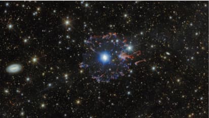 या दोन्ही दुर्बिणींच्या एकत्रित निरीक्षणातून या नेब्युलाची गुंतागुंतीची रचना, त्यात पसरलेल्या वायूची वलयं आणि पूर्वी झालेल्या स्फोटांच्या खुणा स्पष्टपणे समोर आल्या आहेत. या फोटोच्या पार्श्वभूमीवर दूरवर असलेल्या अनेक आकाशगंगाही स्पष्ट दिसत आहेत.