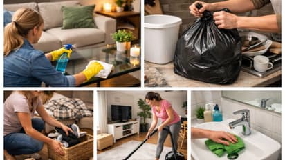 Quick House Cleaning Hacks: अचानक पाहुणे येणार आहेत हे कळल्यावर सगळ्यात आधी डोक्यात विचार येतो तो म्हणजे घराच्या स्वच्छतेचा. पण घाबरून जाण्याची अजिबात गरज नाही. योग्य नियोजन आणि स्मार्ट ट्रिक्स वापरून तुम्ही फक्त २० मिनिटांत संपूर्ण घर फ्रेश आणि नीटनेटकं करू शकता. प्रत्येक कोपरा चमकवलाच पाहिजे असं नाही - फक्त त्या जागांवर लक्ष द्या जिथे सगळ्यांची नजर जाते. चला, जाणून घेऊया इन्स्टंट क्लिनिंगच्या ५ सोप्या स्टेप्स.