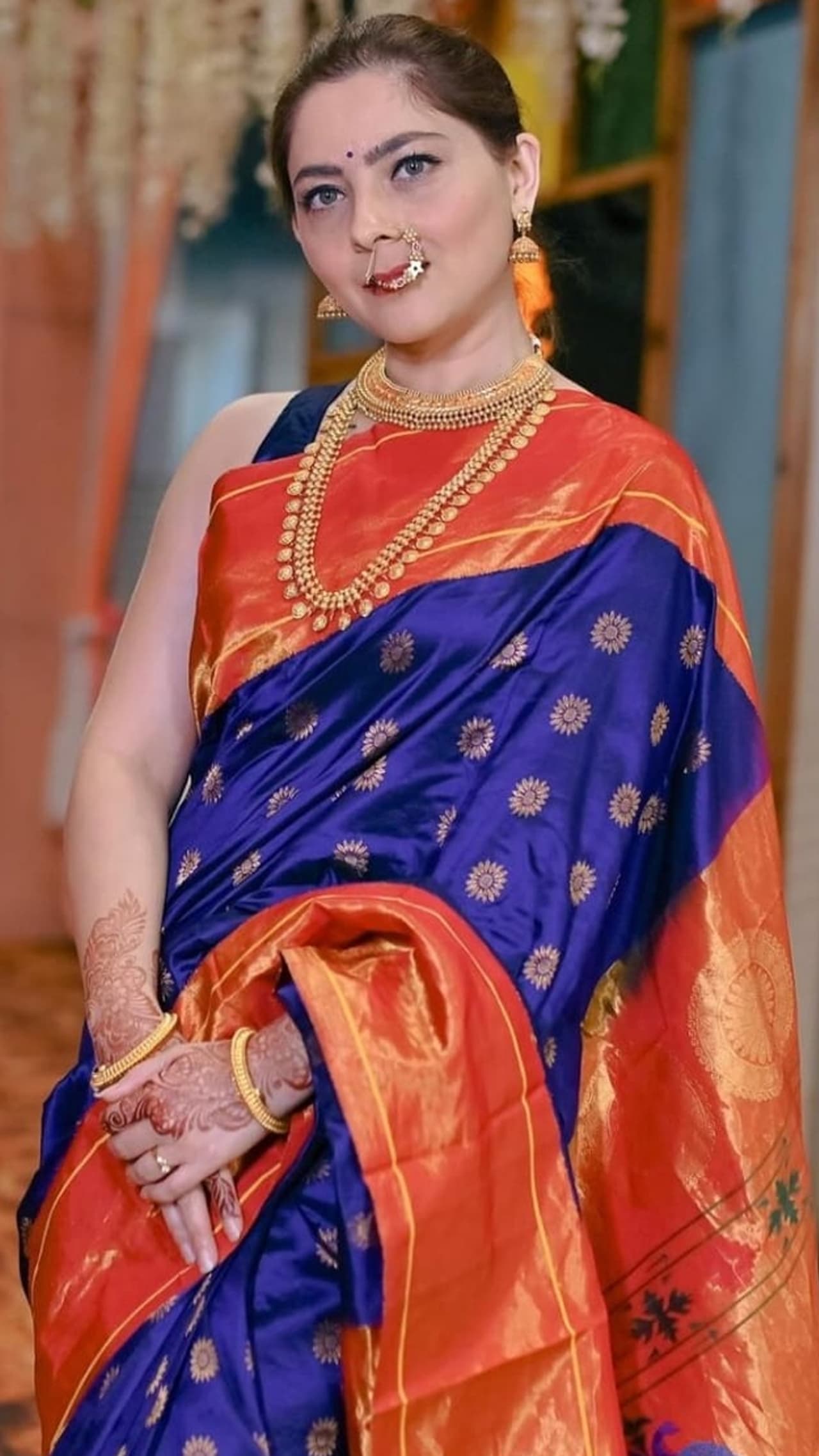 सोनालीचा निळ्या पैठणीतील लुक फॅन्सला फार आवडला आहे.