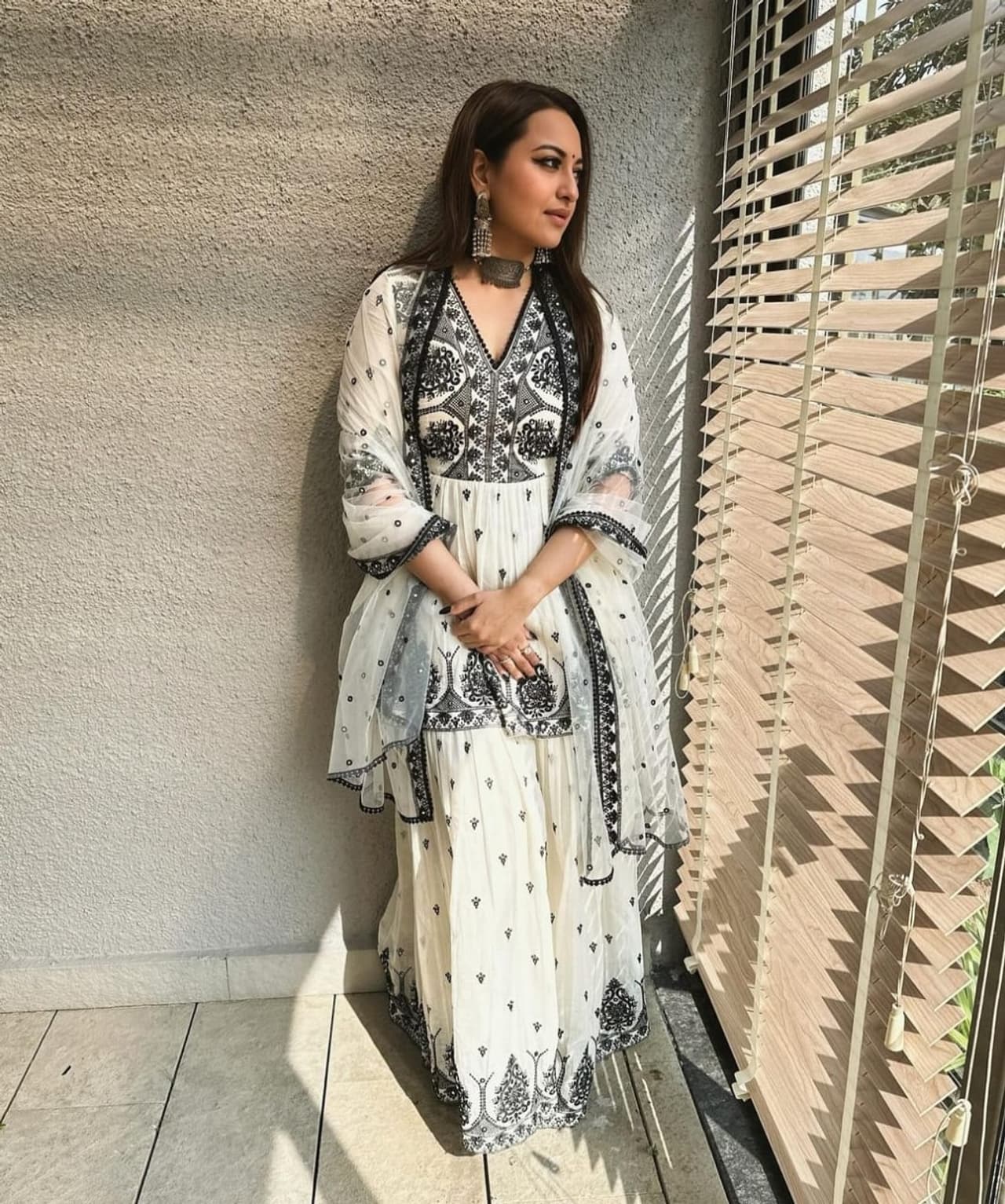 सोनाक्षीने पिंक रंगाचा वन पीस घातला आहे. ज्यामध्ये तिने ओढणी देखील घेतली असून त्यावर हिरव्या रंगाचा सुंदर डायमंडच चोकर घातला आहे. तुम्ही देखील असा सेम लुक करू शकता किंवा यापासून प्रेरणा घेऊ शकता