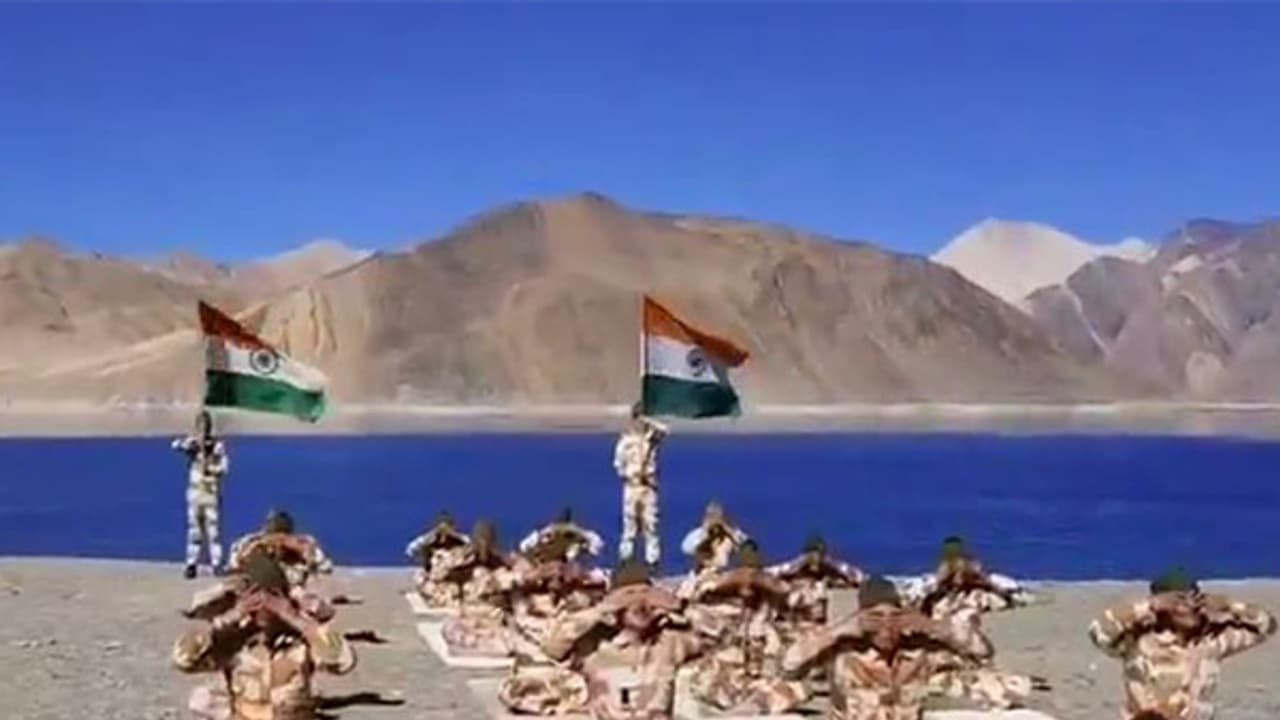 आंतरराष्ट्रीय योग दिनानिमित्त, भारत-तिबेट सीमा पोलिस (ITBP) ने पांगोंग त्सोच्या काठावर १४,००० फूटांहून अधिक उंचीवर असलेल्या धनसिंह थापा आणि चार्टसे सीमा चौक्यांवर योगाभ्यास केला.