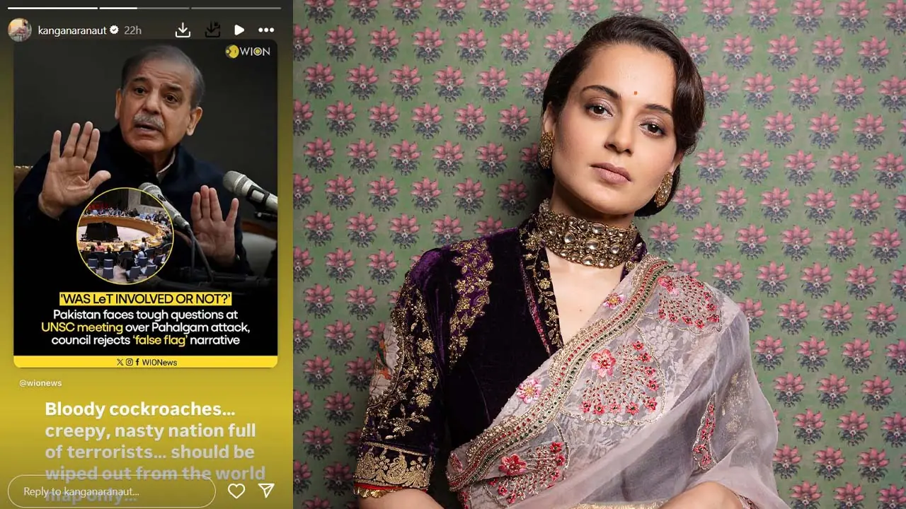 २२ एप्रिल रोजी पहलगाम दहशतवादी हल्ल्यात २६ जणांचा बळी गेल्यानंतर संयुक्त राष्ट्र सुरक्षा परिषदेत पाकिस्तानला फटकारण्यात आल्याच्या WION च्या वृत्ताची तिने पुन्हा पोस्ट केली. या वृत्तासोबत कंगनाने लिहिले: