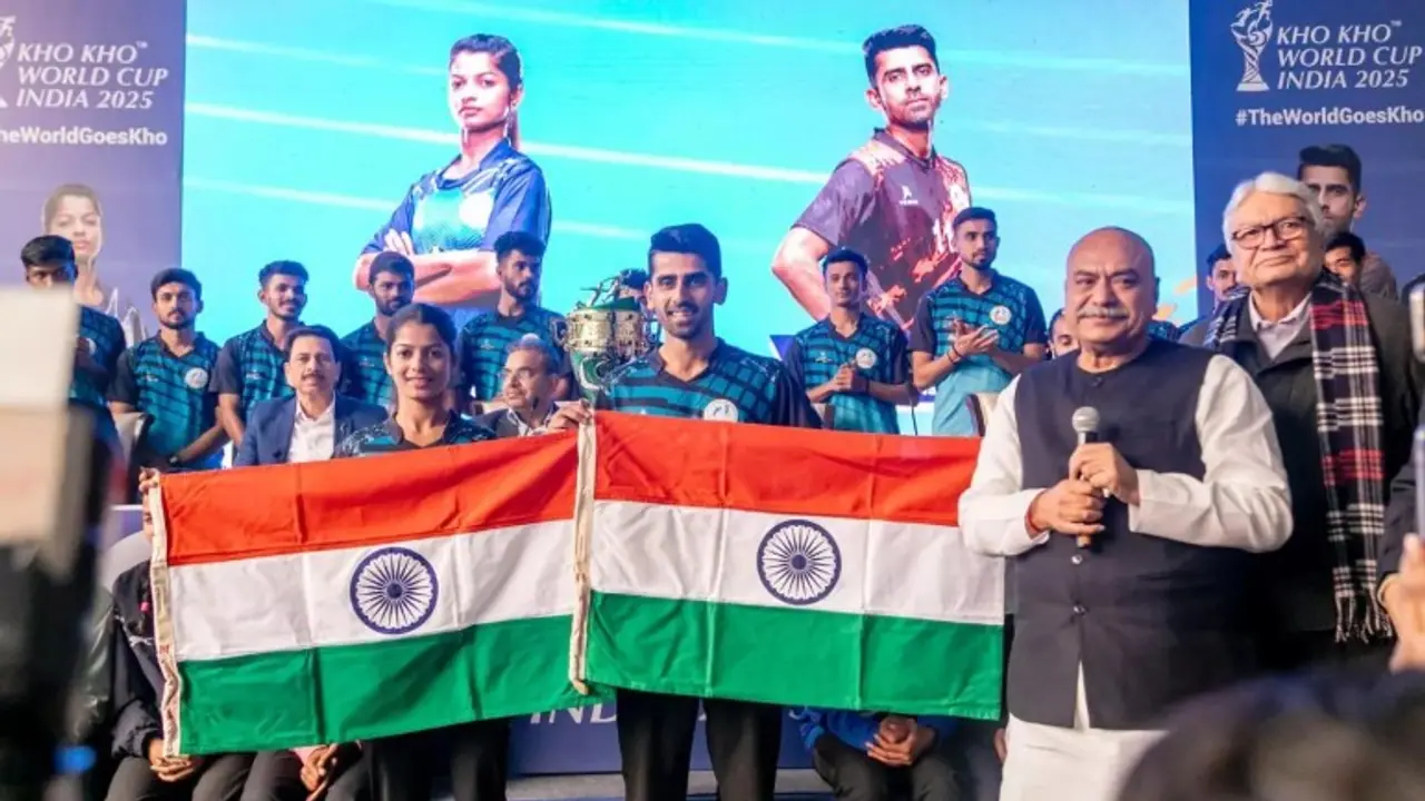 खो खो विश्वचषकाचे सीईओ मेजर जनरल विक्रम देव डोग्रा आणि खो खो फेडरेशन ऑफ इंडियाचे अध्यक्ष सुधांशु मित्तल यांनी संघांची घोषणा केली. मित्तल यांनी संघांचे जर्सी देखील अनावरण केले - पुरुष आणि महिला संघांसाठी 'भारत' लोगो असलेले जर्सी सादर करण्यात आले. भारतीय संघ 'भारत की टीम' म्हणून ओळखला जाईल, असे मित्तल यांनी पत्रकार परिषदेत सांगितले. महिला विश्वचषक विजेत्यांसाठीचा चषक देखील पत्रकार परिषदेत प्रदर्शित करण्यात आला.