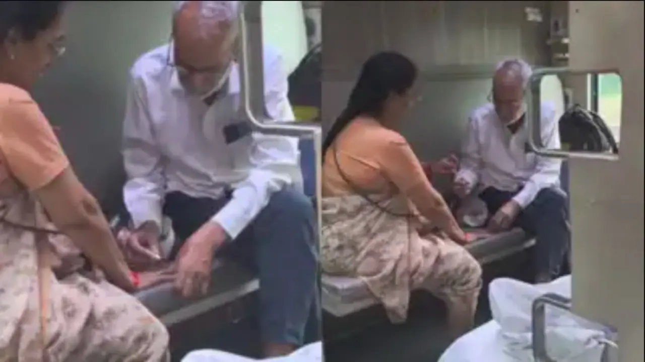 ट्रेनमध्ये प्रवास करताना एका पतीने आपल्या पत्नीच्या हाताच्या बोटांवर नेलपॉलिश लावल्याचा व्हिडिओ व्हायरल झाला आहे.