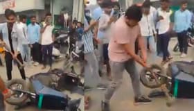 ओला इलेक्ट्रिक स्कूटरच्या शोरूमसमोर एका व्यक्तीने आपला स्कूटर हातोड्याने तोडला. कंपनीने स्कूटर दुरुस्त न केल्याने आणि ₹९०,००० च्या बिलामुळे तो संतप्त झाला.