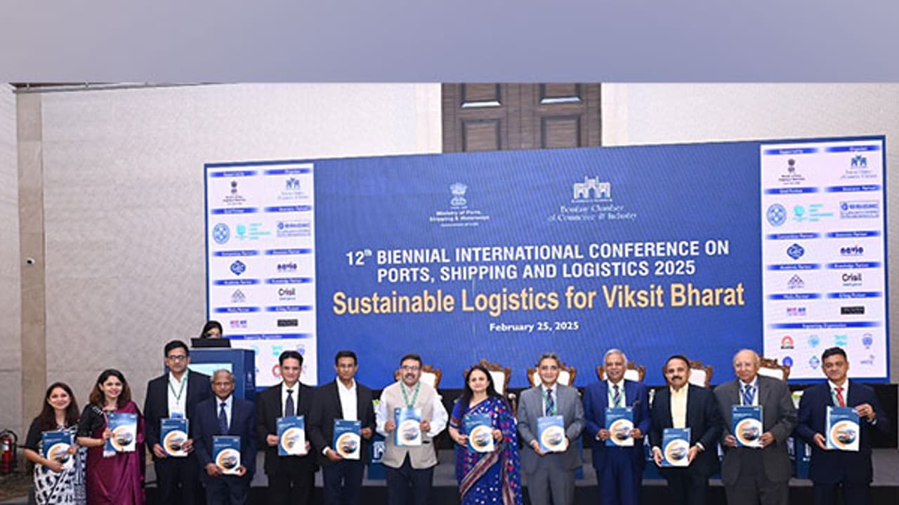केंद्रीय वाणिज्य आणि उद्योग मंत्री पीयूष गोयल यांनी मुंबईतील बॉम्बे चेंबर ऑफ कॉमर्स अँड इंडस्ट्रीने आयोजित केलेल्या १२ व्या द्वैवार्षिक आंतरराष्ट्रीय बंदर, शिपिंग आणि लॉजिस्टिक्स २०२५ परिषदेत व्हिडिओ कॉन्फरन्सिंगद्वारे सांगितले.