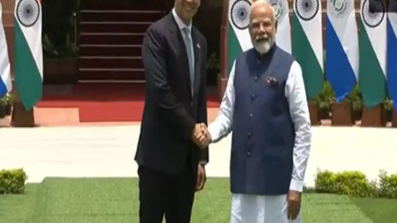 नवी दिल्ली [भारत], २ जून (ANI): पंतप्रधान नरेंद्र मोदी यांनी सोमवारी नवी दिल्लीतील हैदराबाद हाऊस येथे पॅराग्वेचे राष्ट्राध्यक्ष सँटियागो पेना पॅलेसिओस यांच्याशी भेट घेतली. यापूर्वी, राष्ट्राध्यक्ष पॅलेसिओस यांनी राजघाट येथे महात्मा गांधींना श्रद्धांजली वाहिली आणि स्मारकावर पुष्पहार अर्पण केला. हे भेट ४ जून रोजी संपणारे त्यांचे भारताच्या तीन दिवसीय राजकीय भेटीचा एक भाग आहे.
