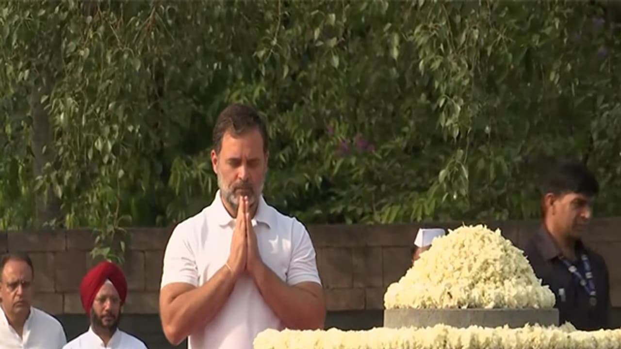 राहुल गांधी, मल्लिकार्जुन खर्गे आणि इतर काँग्रेस नेत्यांनी माजी पंतप्रधान राजीव गांधी यांना त्यांच्या ३४ व्या पुण्यतिथीनिमित्त वीरभूमी, दिल्ली येथे पुष्पांजली अर्पण केली.