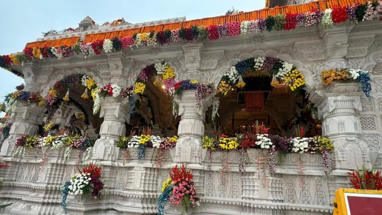 रामलला यांच्या प्राणप्रतिष्ठा सोहळ्याच्या पार्श्वभूमीवर श्री राम मंदिरामध्ये सुंदर सजावट करण्यात आली आहे.