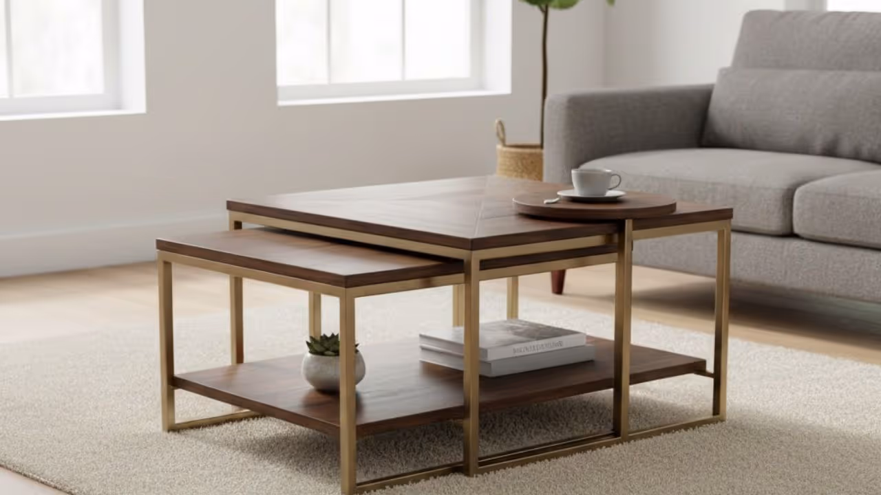 नेस्टिंग टेबल्स म्हणजे दोन किंवा तीन लहान टेबलांचा सेट, जे एकमेकांच्या खाली व्यवस्थित बसतात. गरज असेल तेव्हा तुम्ही ते बाहेर काढू शकता, नाहीतर एकाच जागी कॉम्पॅक्ट ठेवून देऊ शकता. हे डिझाइन लहान अपार्टमेंटसाठी एकदम परफेक्ट आहे. वुडन किंवा मॅट फिनिशमधले नेस्टिंग टेबल्स मिनिमल आणि फंक्शनल दोन्ही दिसतात.
