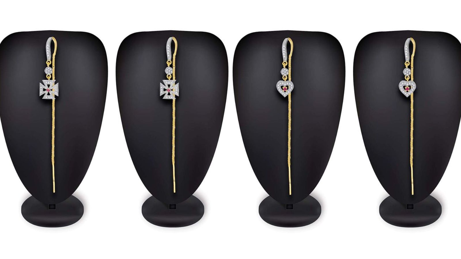 एडी वर्क सुई धाग्याची ही डिझाईनही खूप सुंदर आणि क्लासी दिसेल. एडी वर्कमध्ये ही सोन्याची सुई धागा सूट आणि साडीसोबत खूप सुंदर दिसते. ही तुम्ही २-४ ग्रॅम सोन्यात बनवू शकता, जी चेहऱ्याचे सौंदर्य वाढवेल.