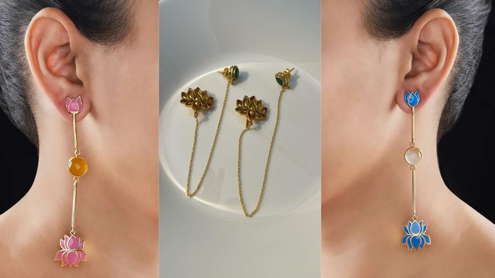 लोटस पॅटर्नमध्ये मेहंदी, आउटफिट आणि ज्वेलरी आजकाल खूप ट्रेंडमध्ये आहेत. जर तुम्हाला या प्रकारच्या काही खास आणि ट्रेंडी डिझाईनमध्ये ज्वेलरी हवी असेल, तर एकदा या प्रकारच्या लोटस पॅटर्नवाली सुई धागा इयररिंग नक्की ट्राय करा. श्रावणात खास लोटस पॅटर्नवाली सुई धागा सोन्यात बनवू शकता, जी कानांवर खूप जमतील.