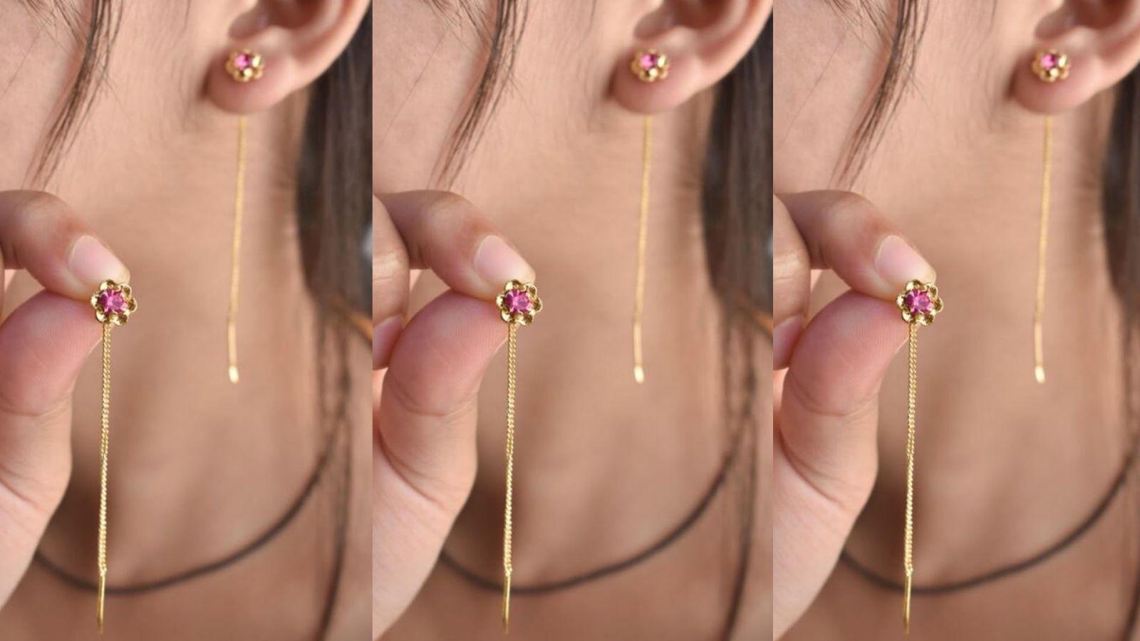 फ्लोरल पॅटर्नमध्ये या प्रकारचे सुई धागा खूप ट्रेंडी आणि स्टायलिश दिसतात. या प्रकारचे सुई धागा केवळ कानांवरच जमत नाहीत, तर चेहऱ्याची चमकही वाढवतात. पिंक आणि व्हाईट स्टोनच्या सुंदर कामासोबत हे सुई धागा सावनसाठी घेऊ शकता.