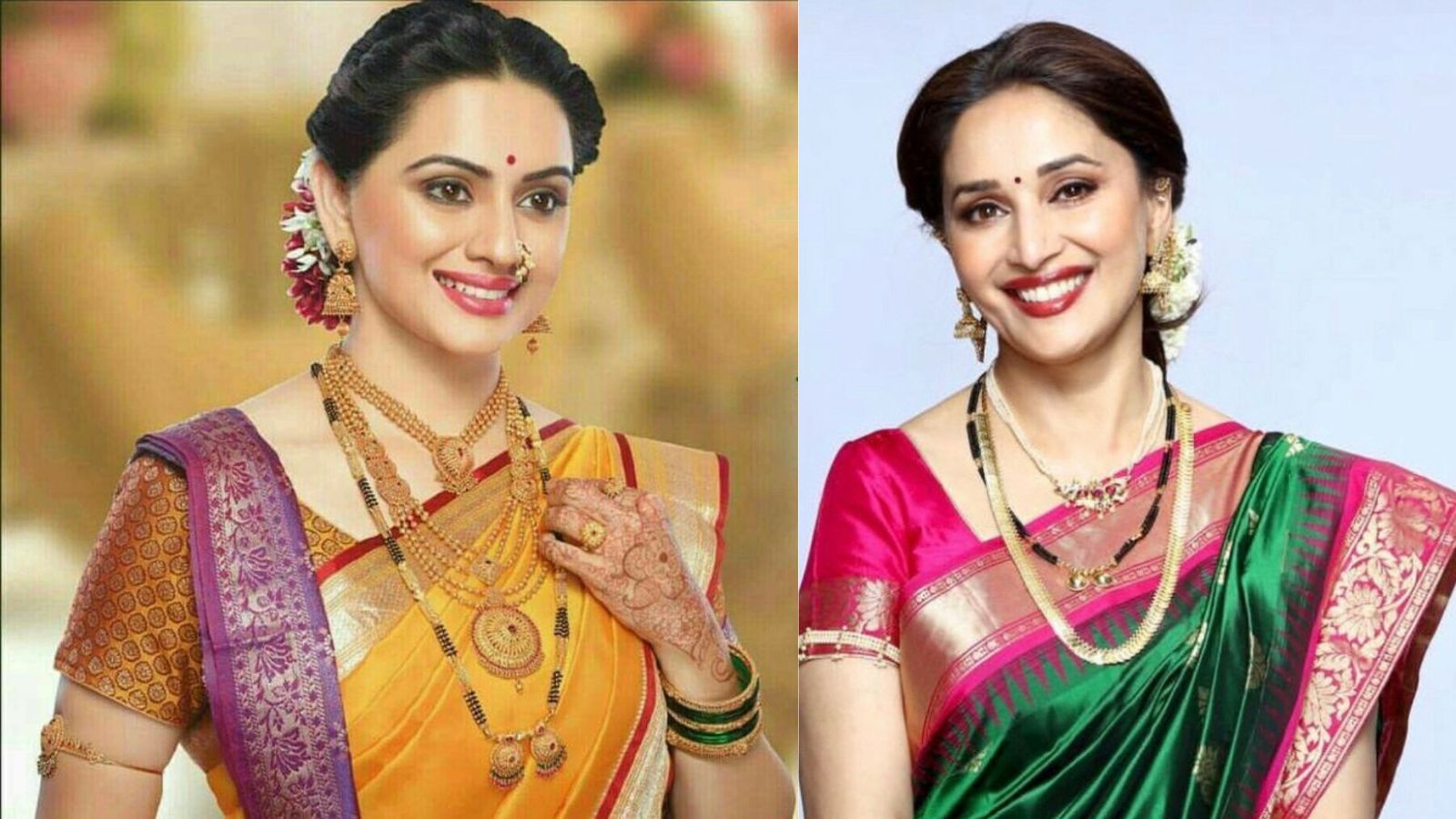श्रावणात हिरवी साडी आणि मराठी वाटी मंगळसूत्राचे कॉम्बिनेशन खूपच सुंदर दिसते. वाटी, लांब, नाण्यांचे आणि कटोरी असे अनेक डिझाईन्स ट्राय करा.