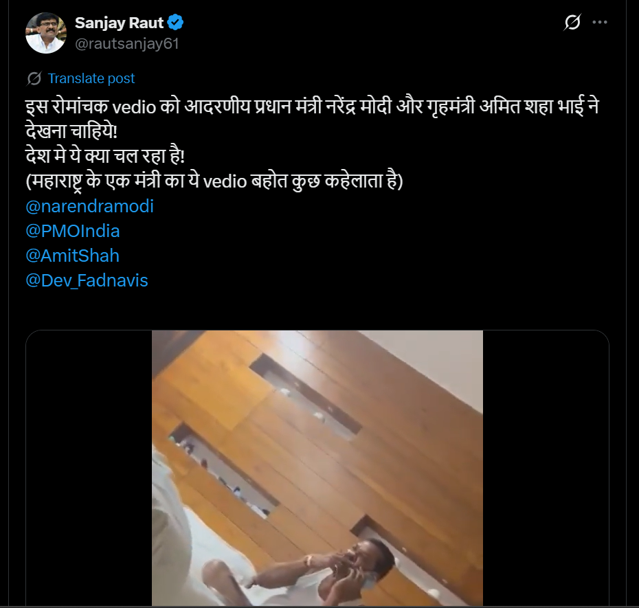“हा व्हिडीओ रोमांचक आहे, पंतप्रधान मोदी आणि अमित शाह यांनी पाहायला हवा. एका मंत्र्याचा हा व्हिडीओ खूप काही सांगतो. फडणवीस यांना आता तरी कृती करायची की अजूनही अब्रू गमावत बसायचं?” – संजय राऊत