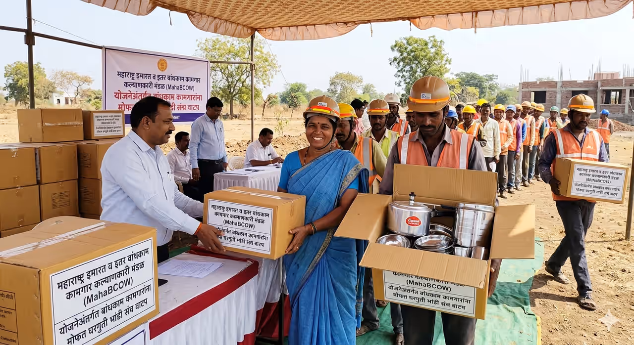 मुंबई: महाराष्ट्रातील कष्टकरी बांधकाम कामगारांच्या आयुष्यात सुख सोयी आणण्यासाठी 'महाराष्ट्र इमारत व इतर बांधकाम कामगार कल्याणकारी मंडळ' (MahaBCOW) कडून विविध योजना राबवल्या जातात. यातील अत्यंत लोकप्रिय ठरलेली योजना म्हणजे 'भांडी संच योजना'. या योजनेअंतर्गत नोंदणीकृत कामगारांना घरगुती वापरासाठी आवश्यक असलेल्या तब्बल १७ दर्जेदार वस्तूंचा संच मोफत दिला जात आहे.