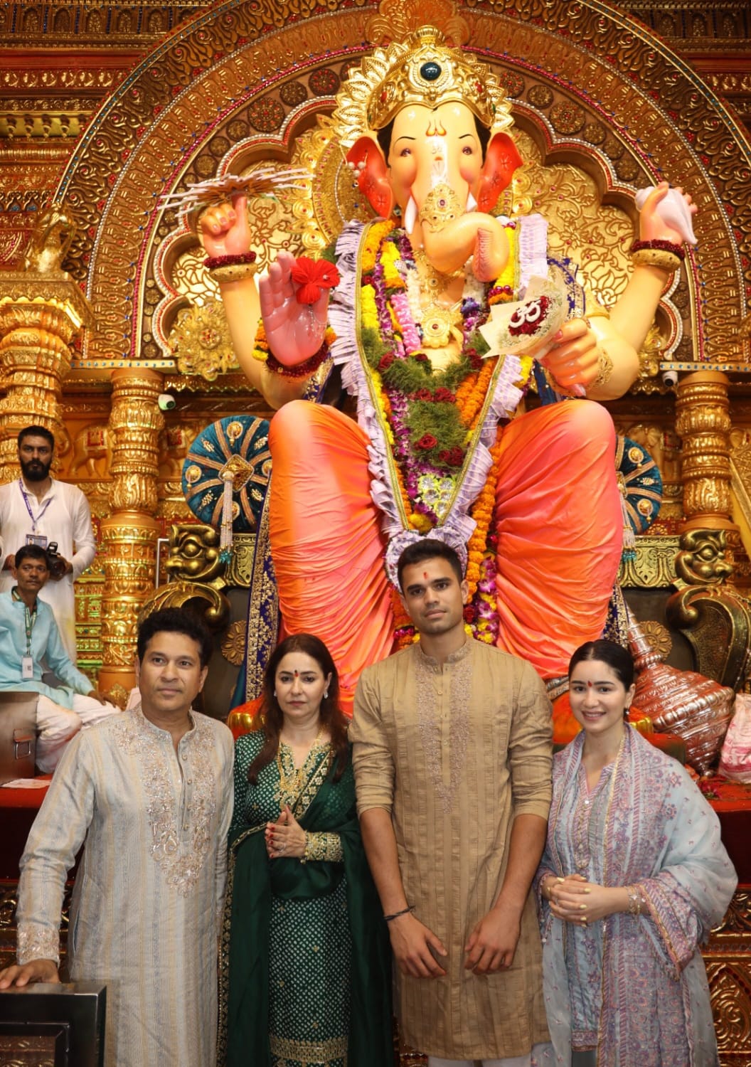 Sachin Tendulkar Laalbaugcha Raja Darshan : सचिन तेंडुलकर कुटुंबासह लालबागच्या राजाच्या दर्शनासाठी गेला होता. यावेळी त्याने अर्जुनच्या साखरपुड्याची बातमीही दिली. अर्जुनचा साखरपुडा सानिया चांडोकसोबत झाला आहे.