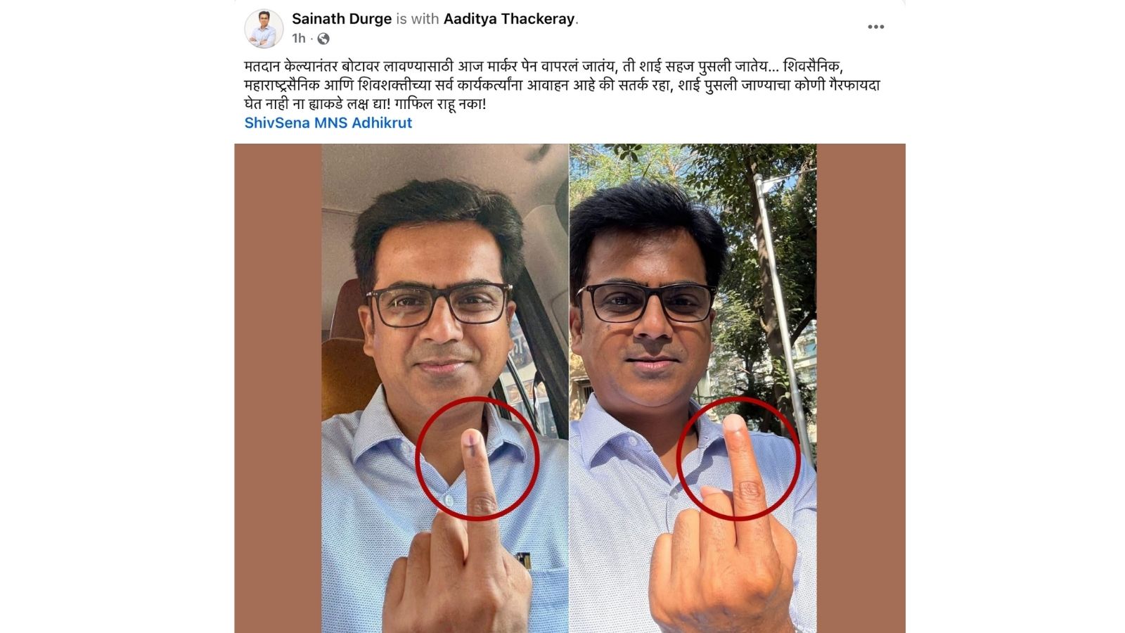 मुंबई महापालिका निवडणुकीत यंदा मतदारांच्या बोटावर पारंपरिक शाईऐवजी मार्करने खूण केली जात आहे. मात्र, हा मार्कर बोटावरून सहज पुसला जात असल्याचे अनेक ठिकाणी दिसून आले. विशेष म्हणजे, बोटावरील नखावर लावलेली खूणच पुसत असल्याची कबुली मुंबई महानगरपालिकेचे आयुक्त भूषण गगराणी यांनी दिली आहे. या प्रकारामुळे एकाच व्यक्तीने पुन्हा मतदान करण्याची शक्यता निर्माण होत असल्याची चर्चा सुरू झाली आहे. याशिवाय शिवसेनेचे साईनाथ दुर्गे यांनी सोशल मीडियावर या संबंधित पोस्ट शेअर केली आहे.