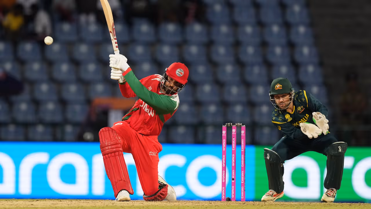 ऑस्ट्रेलियन गोलंदाजांनी केलेल्या भेदक माऱ्यापुढे प्रथम फलंदाजी करणाऱ्या ओमानचा संघ फक्त 104 धावांवर गारद झाला. ऑस्ट्रेलियाकडून लेग स्पिनर ॲडम झाम्पाने शानदार गोलंदाजी करत 4 विकेट्स घेतल्या. तर, ग्लेन मॅक्सवेल आणि झेवियर बार्टलेट यांनी प्रत्येकी 2-2 विकेट्स मिळवल्या. ओमानकडून वसीम अलीने 32, जतिंदर सिंगने 17, हम्माद मिर्झाने 16 आणि करन सोनावलेने 12 धावा केल्या.