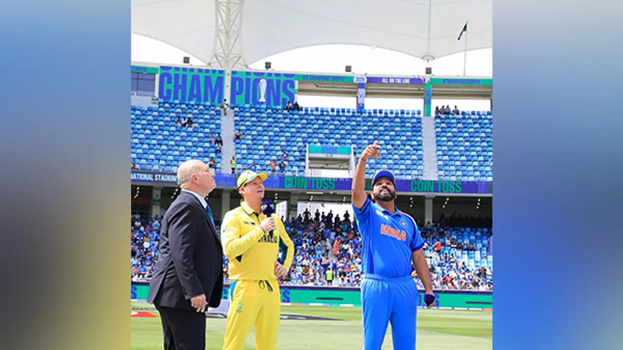२०२५ च्या आयसीसी चॅम्पियन्स ट्रॉफीच्या पहिल्या उपांत्य फेरीत ऑस्ट्रेलियाने भारताविरुद्ध नाणेफेक जिंकून प्रथम फलंदाजी करण्याचा निर्णय घेतला आहे.