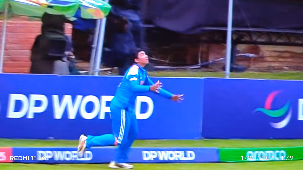 Vaibhav Suryavanshi Takes Stunning Catch : १९ वर्षांखालील विश्वचषक स्पर्धेत काल झालेल्या सामन्यात भारताने डकवर्थ-लुईस नियमानुसार बांगलादेशचा १८ धावांनी पराभव करून सलग दुसरा विजय मिळवला. या विजयात १४ वर्षीय वैभव सूर्यवंशीने ७२ धावांची खेळी करत भारतीय फलंदाजीचे नेतृत्व केले. कर्णधार आयुष म्हात्रे, वेदांत त्रिवेदी आणि विहान मल्होत्रा यांच्या विकेट्स गमावल्यानंतर ५३-३ अशा अडचणीत सापडलेल्या भारताला वैभवने अभिग्यान कुंडूसोबत भागीदारी करून १०० धावांचा टप्पा ओलांडून दिला.