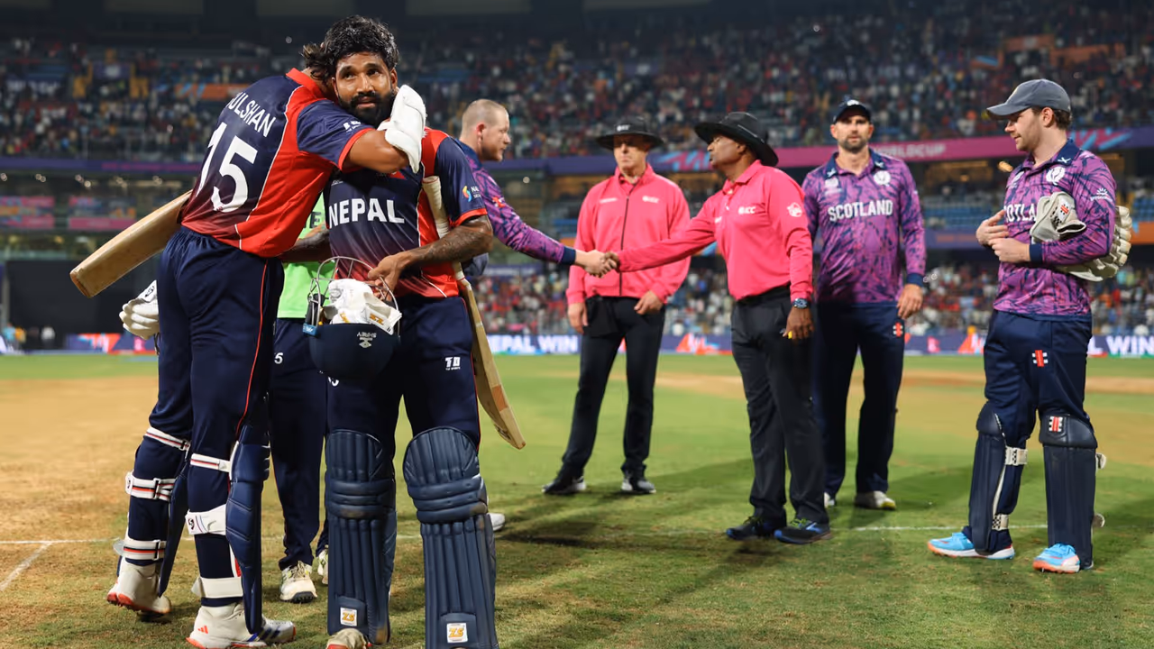 Yesterday T20 World Cup Match Result : T20 विश्वचषक 2026 मध्ये नेपाळने मंगळवार, 17 फेब्रुवारी रोजी आपला पहिला विजय नोंदवला. संघाने स्कॉटलंडला 7 विकेट्सने पराभूत केले. मुंबईच्या वानखेडे स्टेडियमवर खेळल्या गेलेल्या ग्रुप-सीच्या या सामन्यात नेपाळने नाणेफेक जिंकून प्रथम गोलंदाजी करण्याचा निर्णय घेतला. तर, प्रथम फलंदाजी करताना स्कॉटलंडने 20 षटकांत 7 गडी गमावून 170 धावा केल्या, प्रत्युत्तरात नेपाळने 19.2 षटकांत 3 गडी गमावून 171 धावा केल्या.