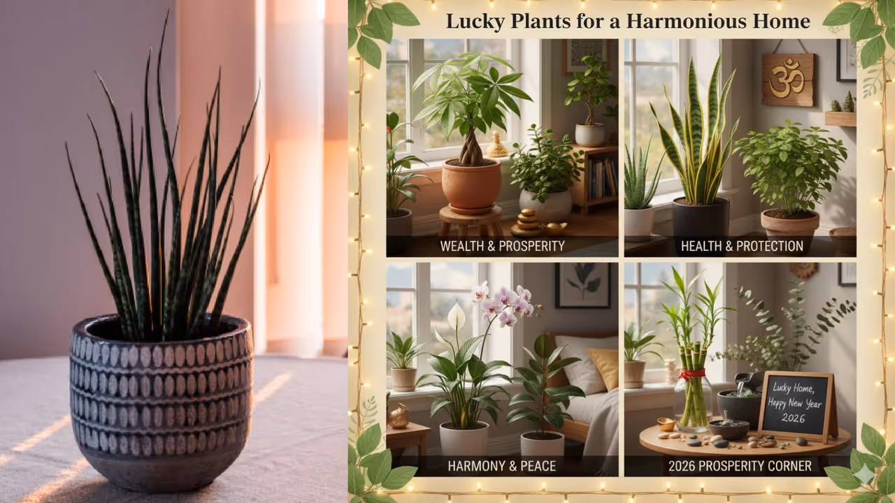 लकी बांबूला फेंगशुईमध्ये खूप शुभ मानले जाते. हे रोप केवळ घराचे सौंदर्यच वाढवत नाही, तर शांती आणि सौभाग्याचे प्रतीकही आहे. याला ड्रॉइंग-रूम किंवा ऑफिस डेस्कवर ठेवता येते. लकी बांबूसाठी स्वच्छ, फिल्टर केलेले पाणी वापरा आणि त्याला थेट सूर्यप्रकाशापासून वाचवा.