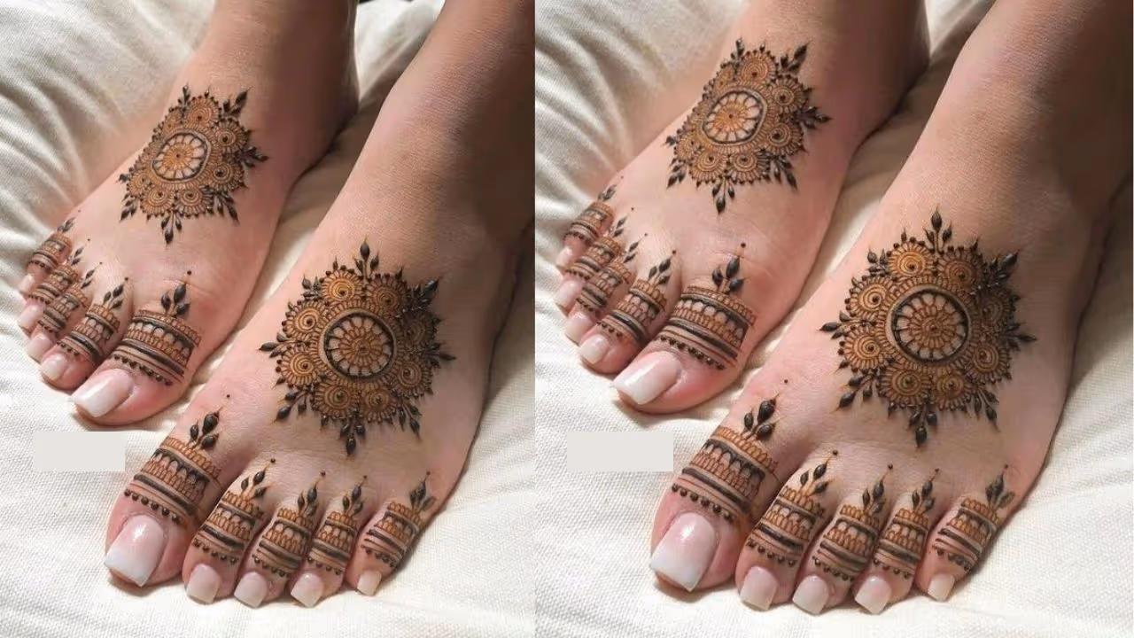 पायांच्या बोटांमधील अंगठी म्हणजेच जोडवी (टो रिंग) हायलाइट करणारं मेहंदी डिझाइन आजकाल खूप ट्रेंडमध्ये आहे. यात बोटांच्या आजूबाजूला खास पॅटर्न काढले जातात, ज्यामुळे जोडवी आणि पाय दोन्ही सुंदर दिसतात. हे डिझाइन ब्रायडल लुकला कंप्लीट आणि डिटेलिंग टच देतं, जे प्रत्येकाचं लक्ष वेधून घेतं.