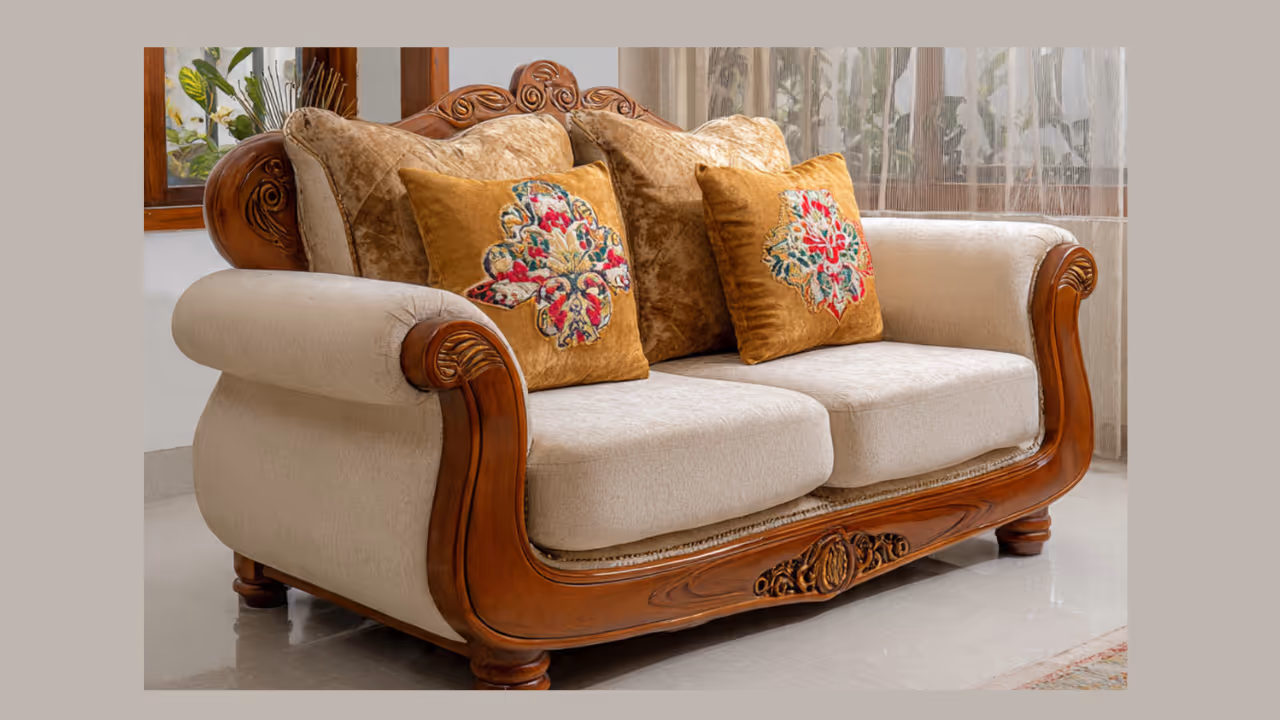 2 Seater Sofa आजकाल मिड-सेंचुरी मॉडर्न डिझाइनचे हे टू-सीटर सोफे खूप ट्रेंडमध्ये आहेत. कमी जागेत ते खूप स्टायलिश दिसतात. या सोफ्यांवर हलकं नक्षीकाम असतं, ज्यामुळे खोली मोकळी वाटते आणि क्लासिक लुक येतो. याचे पाय निमुळते (tapered) असल्यामुळे साफसफाई करणं सोपं जातं. तुम्ही वुडन सोफा म्हणून हे डिझाइन निवडू शकता. 10x10 किंवा त्यापेक्षा लहान खोलीसाठी हे परफेक्ट आहेत. बाजारात तुम्हाला १०,००० रुपयांपर्यंत यात अनेक प्रकार मिळतील.