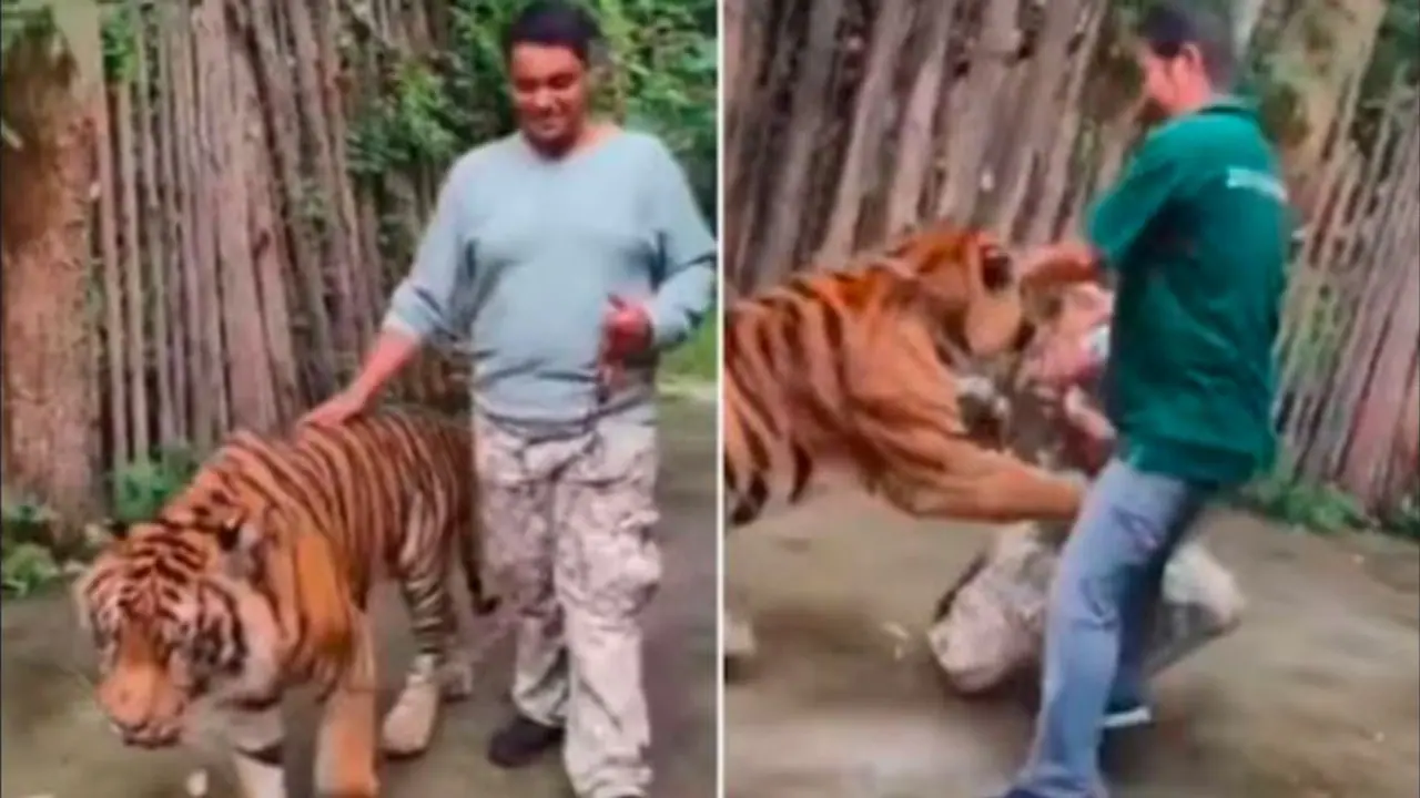 व्हायरल झालेल्या व्हिडिओमध्ये, हल्ल्याचा बळी ठरलेला व्यक्ती उद्यानात वाघाच्या शेजारी चालत जात असल्याचे आणि फोटोसाठी पोज देण्यासाठी बसल्याचे दिसत आहे. यावेळी वाघाचा प्रशिक्षक काठीने वाघाला बसवण्याचा प्रयत्न करतो. यावेळी उग्र स्वभावाचा वाघ आक्रमक होऊन पर्यटकावर हल्ला करतो.
